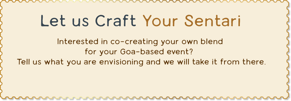 - Bespoke Sentari batches are available exclusively in Goa and cannot be shipped outside of the State. Guests may carry their bottles home with them after the event.