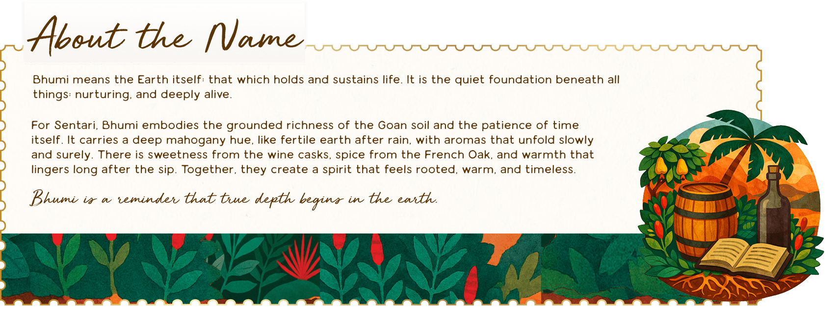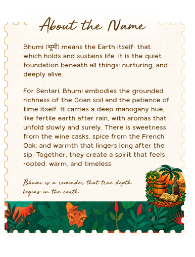 Matured in used wine barrels and fresh French Oak, Bhumi is a bold and introspective expression: Grounded, layered, and quietly powerful.